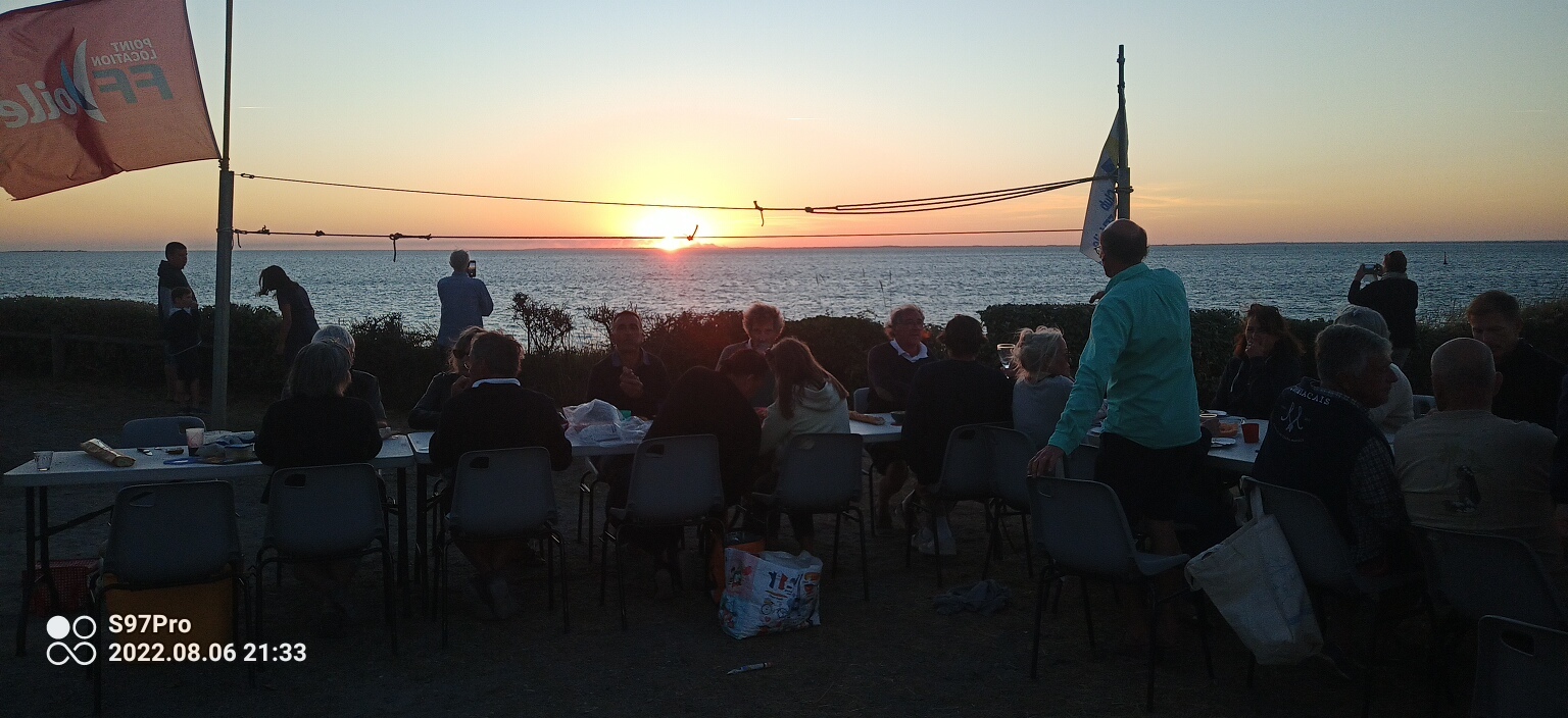 - Raid côtier : c’est avec un doux vent que la flottille d’une dizaine de bateaux du Toul Ru a traversé la baie et qu’une cinquantaine de convives s’est régalée d’une dégustation d’huîtres à Penerf. L’équipe de La belle Pernerfine nous a chaleureusement accueilli dans une ambiance familiale !
